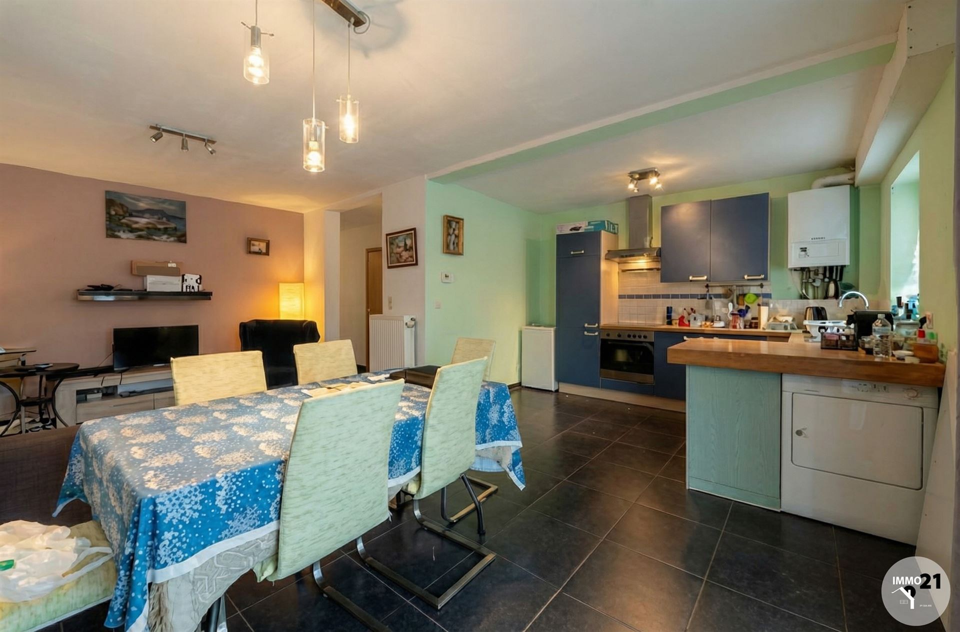 AMAY HAUT. L'agence IMMO21 vous propose ce bel appartement deux chambres situé au rez de chaussée dans un endroit calme. Composé comme suit: Hall d'entrée, séjour donnant sur la cuisine meublée équipée (four, taque vitro céramique, hotte, évier, frigo), wc, vestiaire, deux chambres, salle de bains (baignoire, meuble évier, emplacement machine à lessiver). Parking privé devant l'appartement (possibilité d'accéder directement à l'appartement par une porte fenêtre). Châssis double vitrage, chauffage central gaz de ville (chaudière Vaillant), électricité RECEPTIONNEE, charges communes 140€/mois. Informations transmises sous réserve d'erreurs et non contractuelles. Faire offre à partir de 175 000 €uros. Informations transmises sous réserve d'erreurs et non contractuelles.