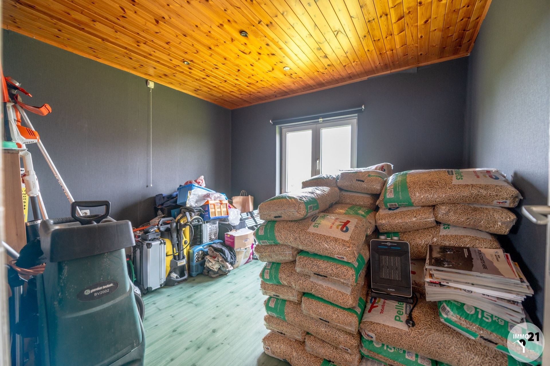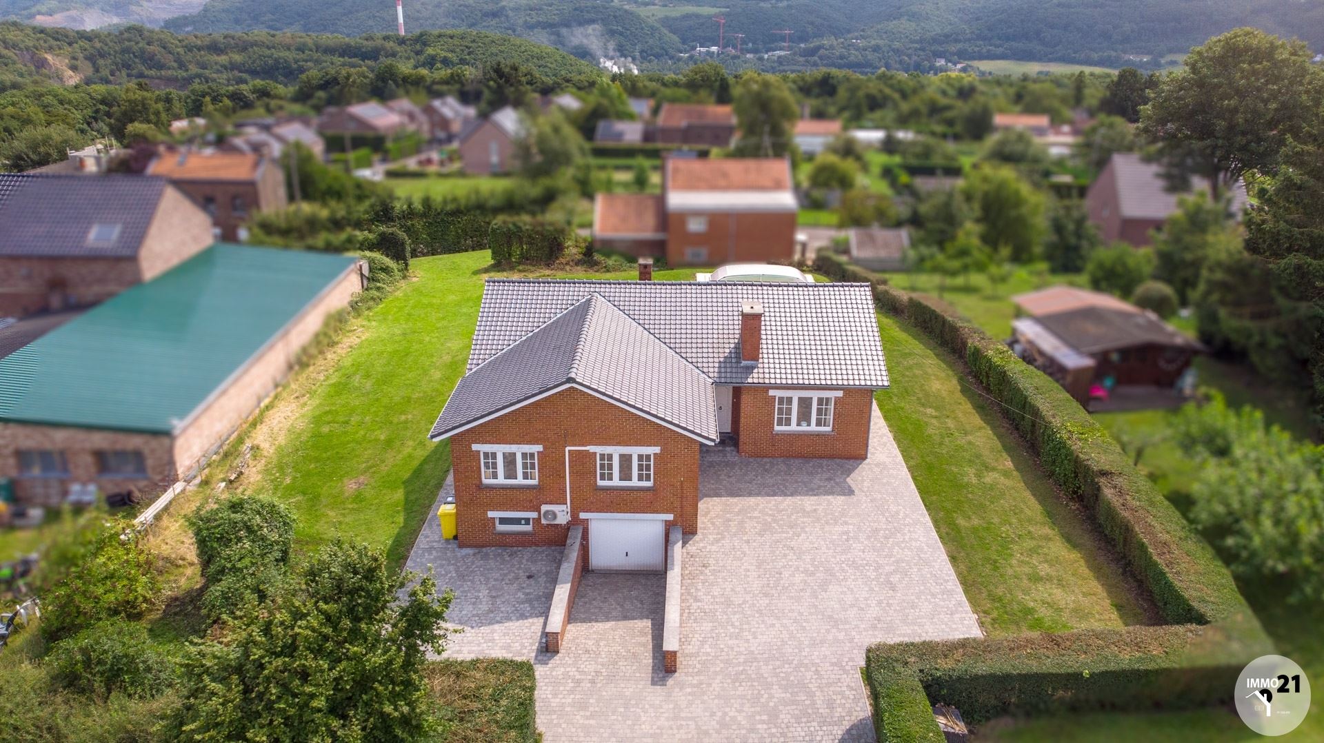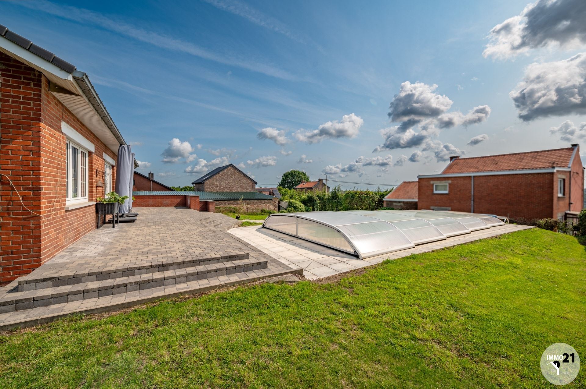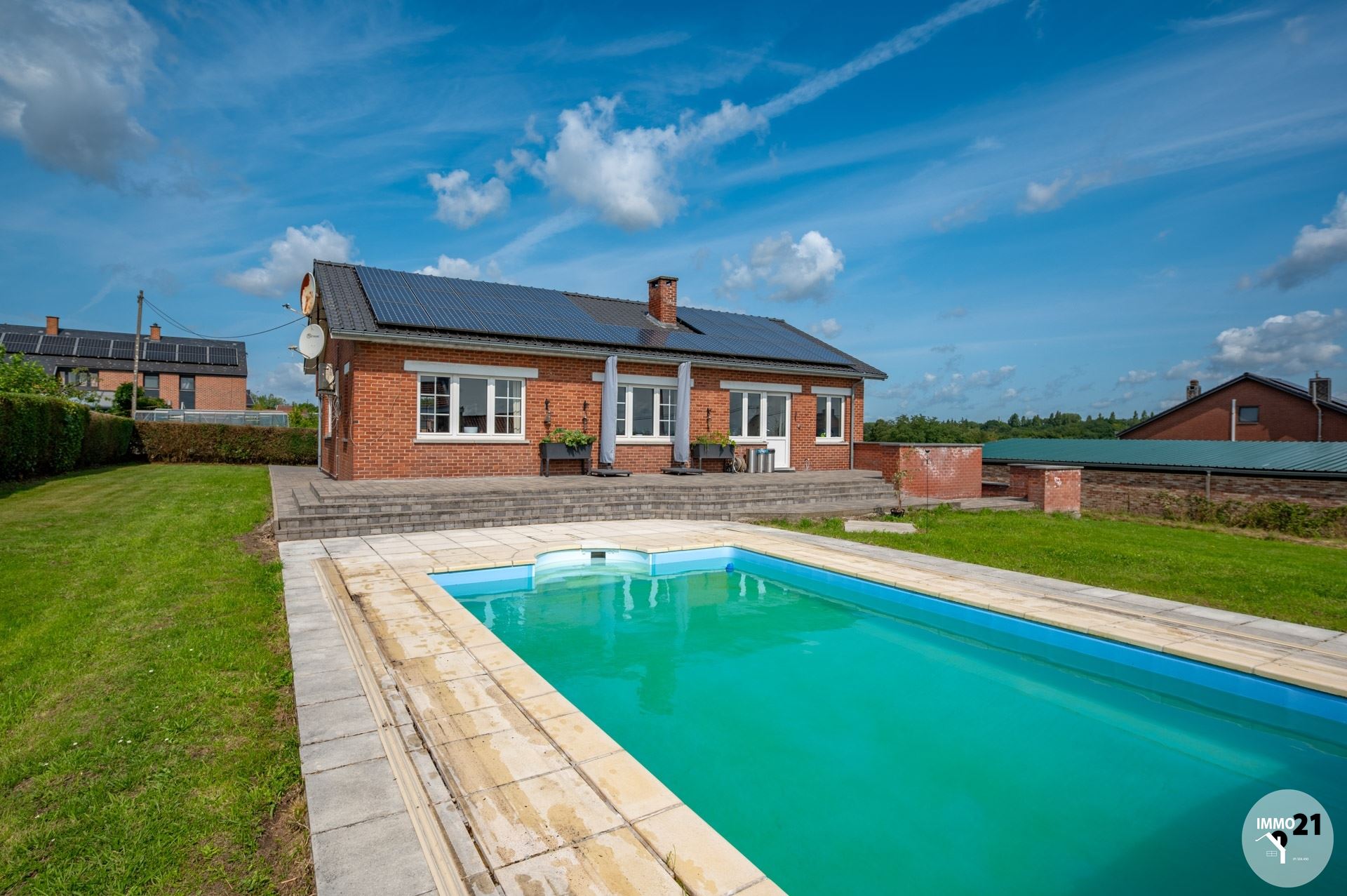 SAINT-GEORGES -SUR-MEUSE. L'agence IMMO21 vous propose ce bungalow 4 façades avec garage et grand jardin avec piscine ( 8 m x 4 m ). Composé comme suit: Hall d'entrée, wc, vestiaire, séjour ( 33 m² ), salle à manger, cuisine meublée équipée ( lave-vaisselle, four, hotte, frigo, évier ), salle de bain ( baignoire, meuble évier ), 4 belles chambres, buanderie, cave, garage. Grand jardin plat avec possibilité d'un second accès par la rue située à l'arrière, et offrant ainsi une parcelle à bâtir. Electricité réceptionnée, panneaux photovoltaïques ( 30 panneaux), châssis double vitrage, citerne d'eau de pluie, groupe hydrophore, adoucisseur d'eau, chauffage central, pompe à chaleur réversible, poêle à pellets, toiture en parfait état ( 2015 ). Le prix indiqué veut dire "faire offre à partir de 419.000€" Informations transmises sous réserve d'erreurs et non contractuelles.