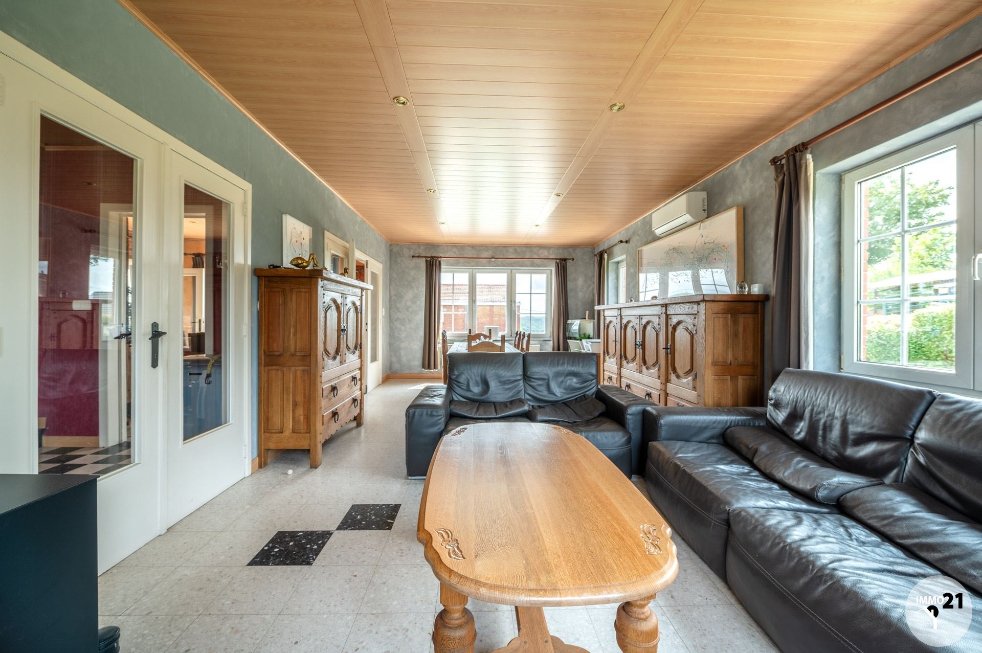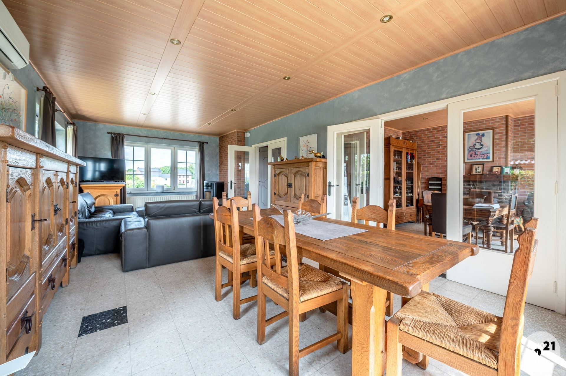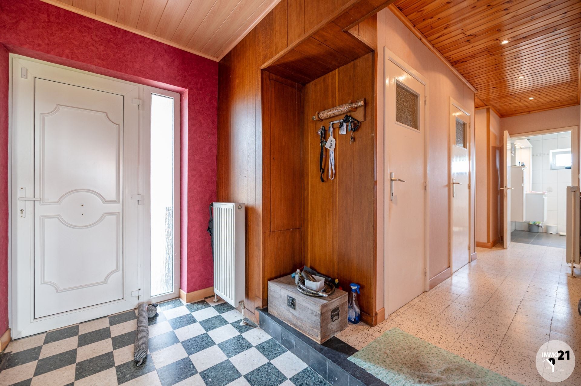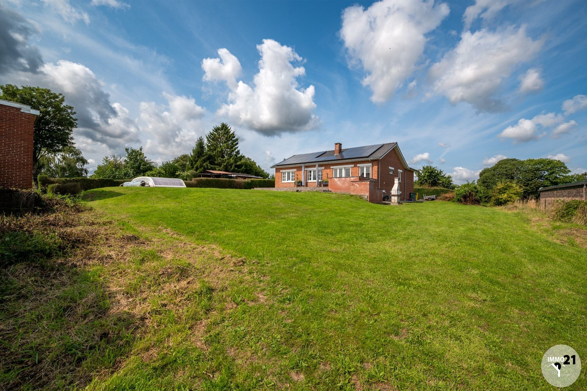 SAINT-GEORGES -SUR-MEUSE. L'agence IMMO21 vous propose ce bungalow 4 façades avec garage et grand jardin avec piscine ( 8 m x 4 m ). Composé comme suit: Hall d'entrée, wc, vestiaire, séjour ( 33 m² ), salle à manger, cuisine meublée équipée ( lave-vaisselle, four, hotte, frigo, évier ), salle de bain ( baignoire, meuble évier ), 4 belles chambres, buanderie, cave, garage. Grand jardin plat avec possibilité d'un second accès par la rue située à l'arrière, et offrant ainsi une parcelle à bâtir. Electricité réceptionnée, panneaux photovoltaïques ( 30 panneaux), châssis double vitrage, citerne d'eau de pluie, groupe hydrophore, adoucisseur d'eau, chauffage central, pompe à chaleur réversible, poêle à pellets, toiture en parfait état ( 2015 ). Le prix indiqué veut dire "faire offre à partir de 419.000€" Informations transmises sous réserve d'erreurs et non contractuelles.