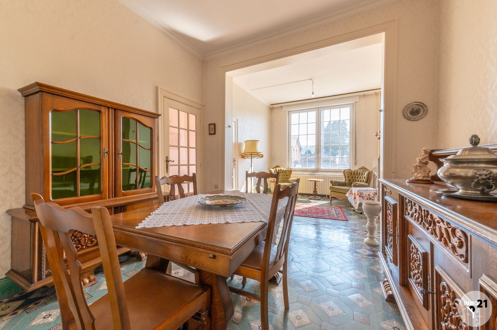 L'agence IMMO21 vous propose cette maison aux très beaux volumes, avec jardin, proche des transports en communs et des commodités. Composée comme suit: hall d'entré, séjour (28 m²), cuisine équipée (évier, four, taque électrique, hotte), véranda. Premier étage: 3 chambres (17,13,12 m²), une salle de bain (baignoire, évier, wc). Deuxième étage: 2 chambres (13 et 20m²) et un bureau (6m²). Niveau inférieur : buanderie avec sortie sur le jardin, wc, deux pièces. Châssis double vitrage, volets sur le rez-de-chaussée, ch. central, citerne d'eau de pluie avec groupe hydrophore, toiture en parfait état, 2 caves, jardin. Informations transmises sous réserve d'erreurs et non contractuelles.