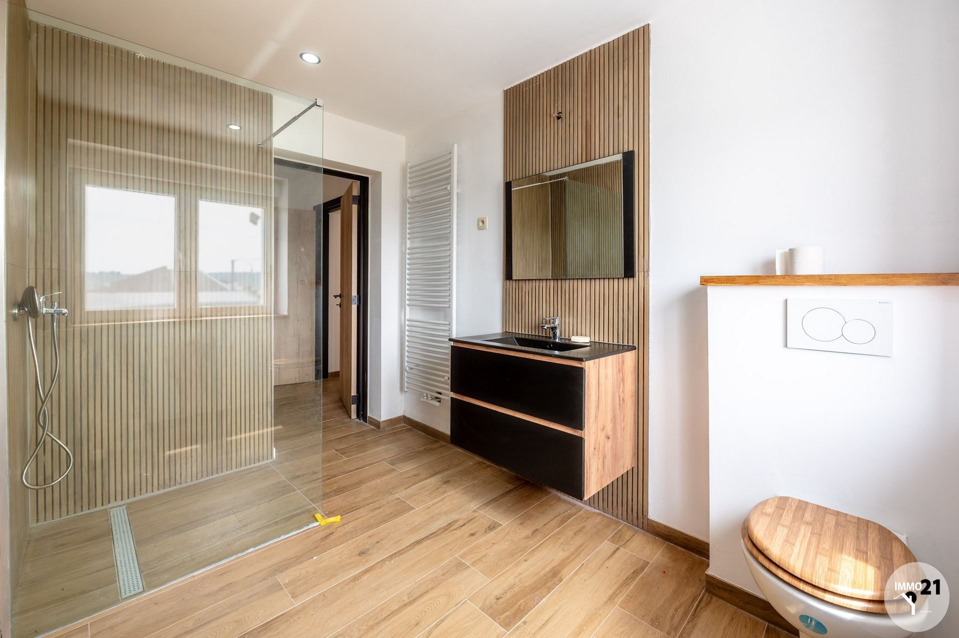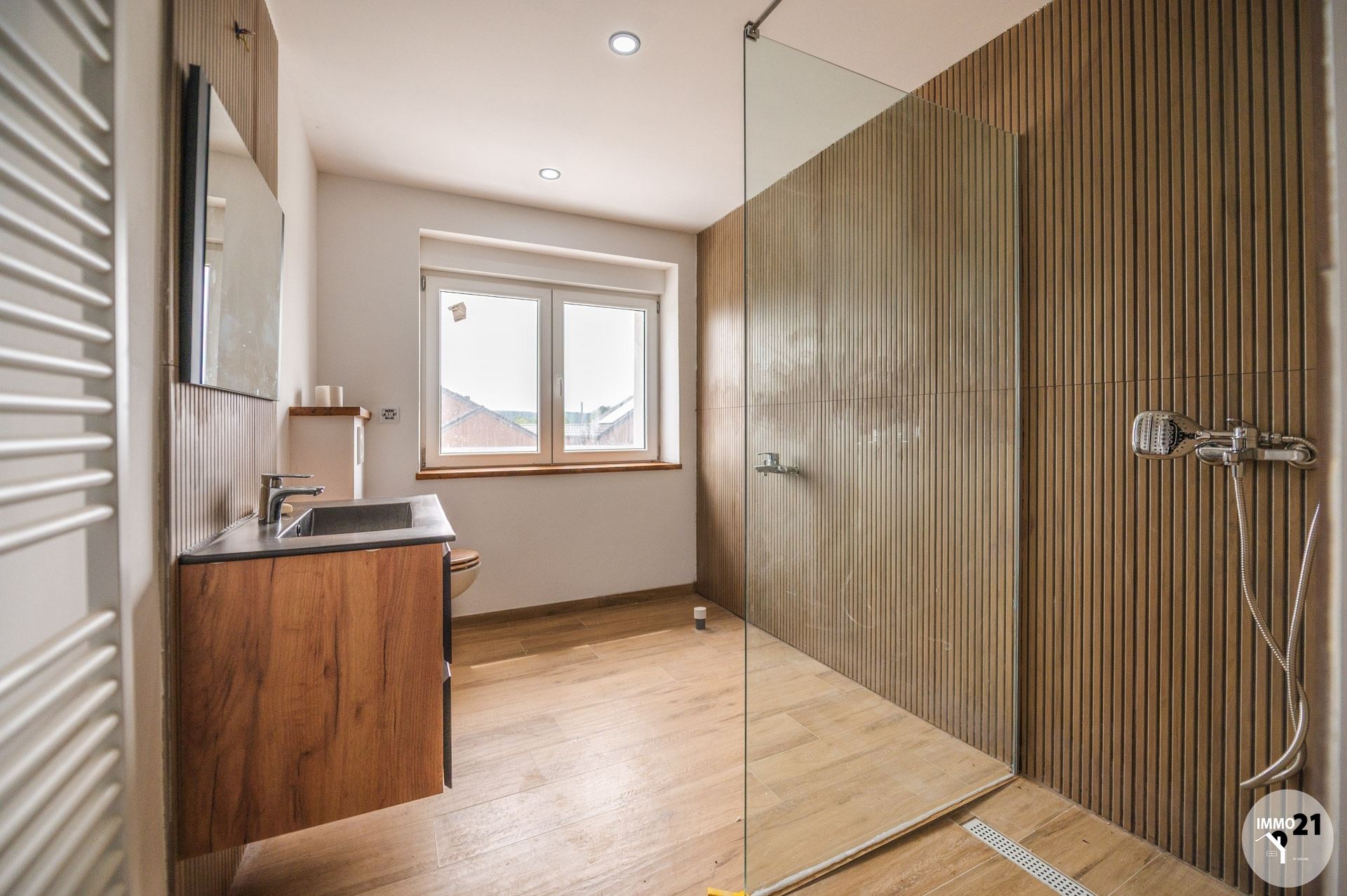 AMAY: L'Agence IMMO 21 vous propose ce nouveau bien situé dans une rue tranquille et à circulation locale, avec une très belle vue. Cette superbe maison avec garages et jardin ayant été entièrement reconstruite ne pourra que vous enthousiasmer par ses volumes. Nouvelles charpentes, nouvelles couvertures, nouveaux châssis, volets électriques partout au rez-de-chaussée, murs extérieurs isolés et crépis, électricité conforme et réceptionnée, chauffage central gaz de ville. Composition: Rez de chaussée: hall d'entrée, salon, cuisine entièrement équipée, salle de bains avec douche italienne (emplacement et canalisations baignoire prévus) + coin buanderie. ETAGE (accessible par deux escaliers): hall de nuit, 4 chambres individuelles, salle de bains avec toilette et douche italienne. Extérieur: grande terrasse en béton lissé, 2 garages (dont un avec fosse) et volets électriques. Une cave. PEB B. Le prix indiqué veut dire "Faire offre à partir de 429.000€" . Informations transmises sous réserve d'erreurs et non contractuelles.