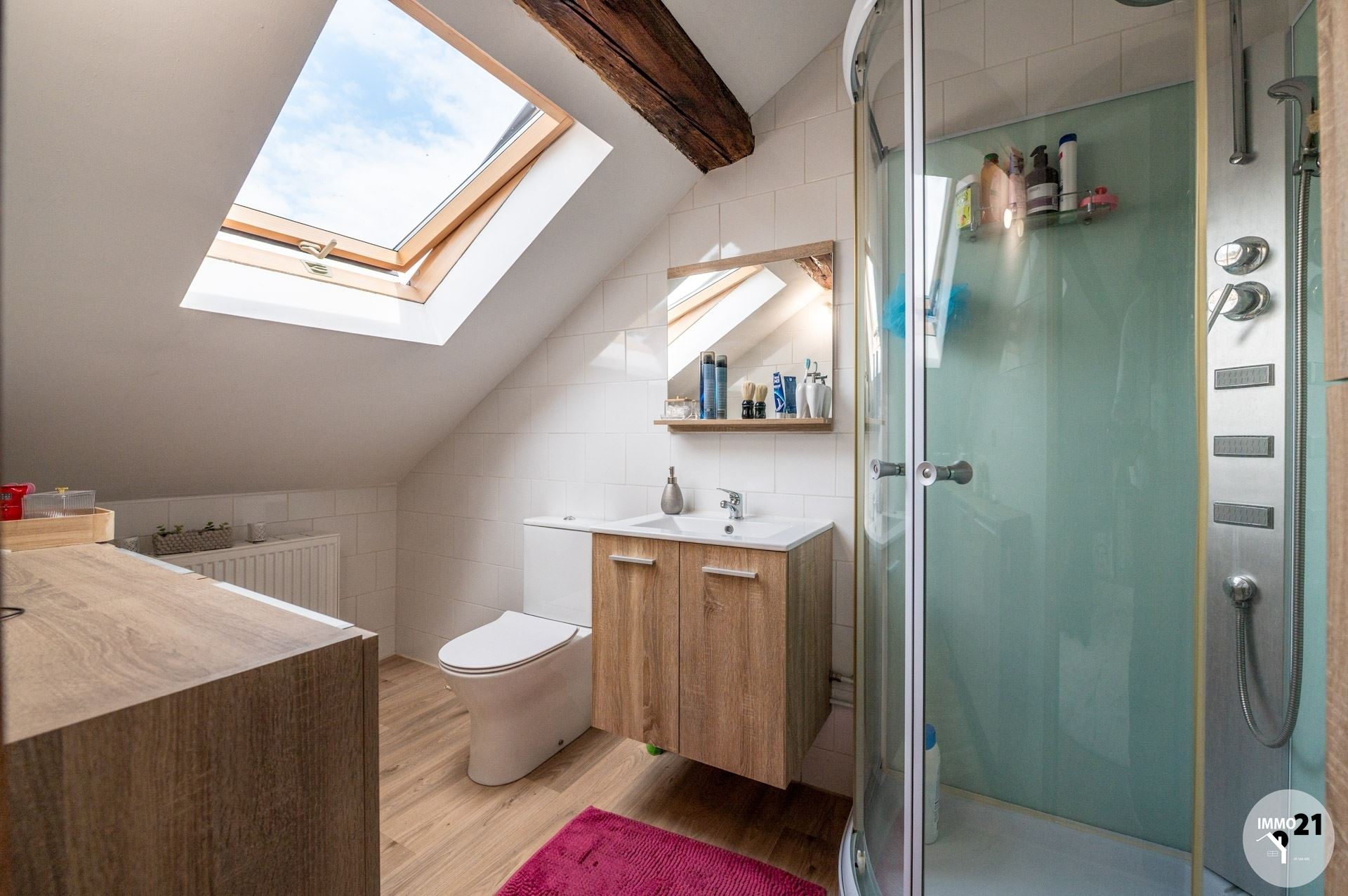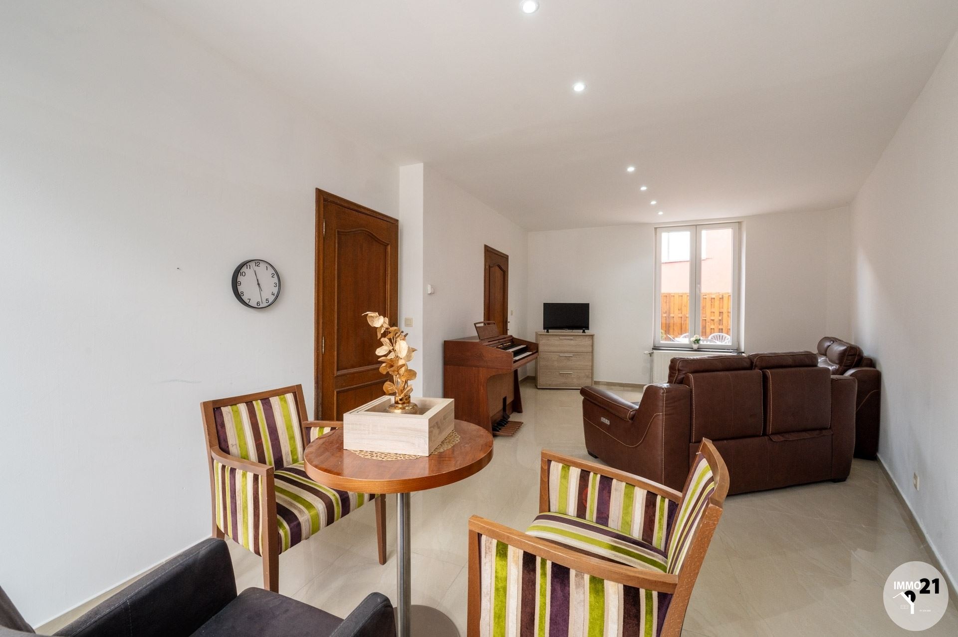 L'agence immo21 vous propose cette maison 3 façades avec petit jardin en plein centre d'AMAY. Celle-ci a été rénovée avec goût. Rez-de-chaussée : Hall d'entrée, beau séjour (30 m²), cuisine équipée avec sortie terrasse, petite buanderie, wc avec lave main. Premier étage: 2 chambres et une salle de bains (baignoire, meuble évier, wc). Deuxième étage: une grande chambre (26 m²), une salle de douche (douche, wc, meuble évier). Caves, 2 ateliers, petit jardin. Passage latéral permettant le passage (vélo, moto, brouette,...). Nouveaux châssis double vitrage, chauffage central gaz de ville, adoucisseur d'eau, citerne d'eau de pluie, toiture en bon état. Le prix indiqué veut dire "faire offre à partir de 199.000€". Informations transmises sous réserve d'erreurs et non contractuelles.