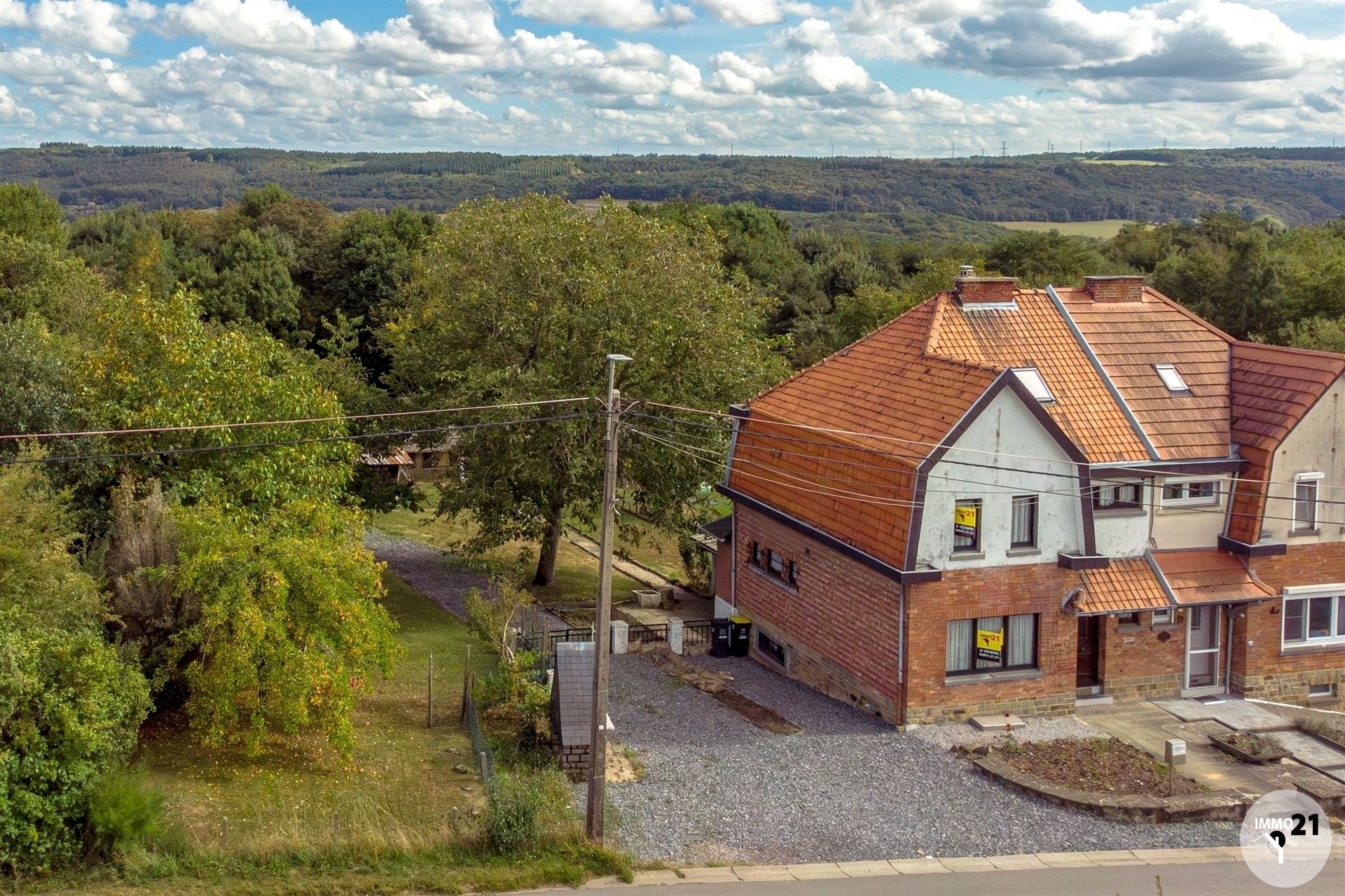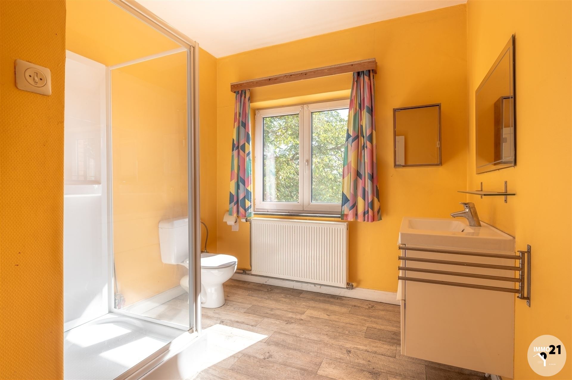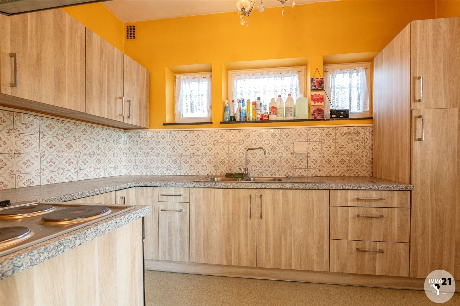 FLÔNE: L'agence IMMO21 vous propose cette maison 3 façades avec grand jardin située dans un endroit de verdure et de tranquillité. Composée comme suit: Rez-de-chaussée: Hall d'entrée, séjour, cuisine (four, taque au gaz, frigo, hotte) donnant sur la salle à manger, toilette + petit espace fermé. Premier étage: 2 chambres, une salle de douche (douche, évier, wc). Grenier aménageable. Sous sol: cave avec chaudière, 2 pièces avec sortie sur le jardin, une deuxième salle de douche (douche, évier, wc) avec espace buanderie. Spacieux jardin avec des arbres fruitiers, garage et abri de jardin, petit atelier. Toiture en bon état et isolée, châssis double vitrage, chauffage central, R.C: 451 €. Informations transmises sous réserve d'erreurs et non contractuelles.