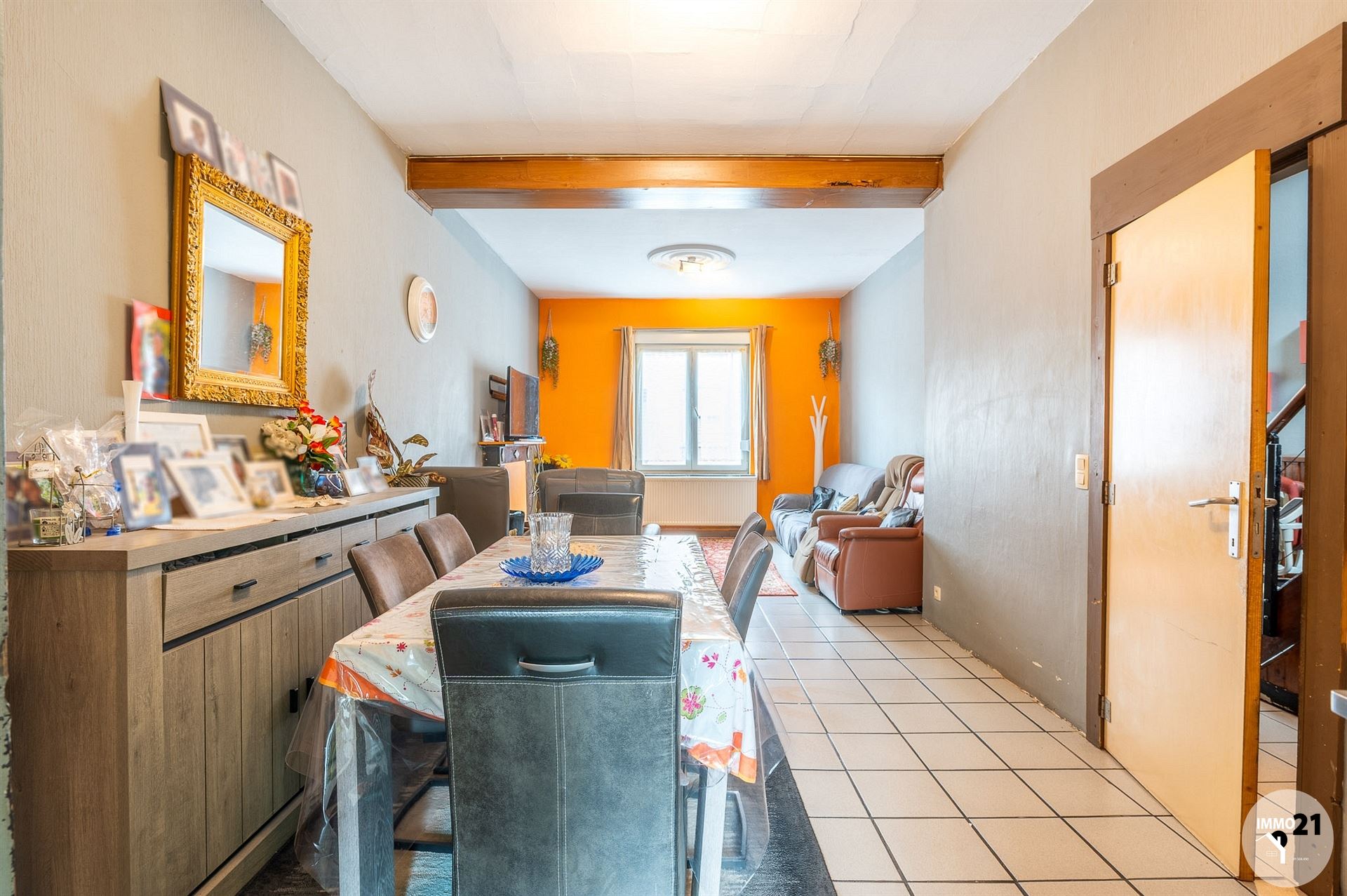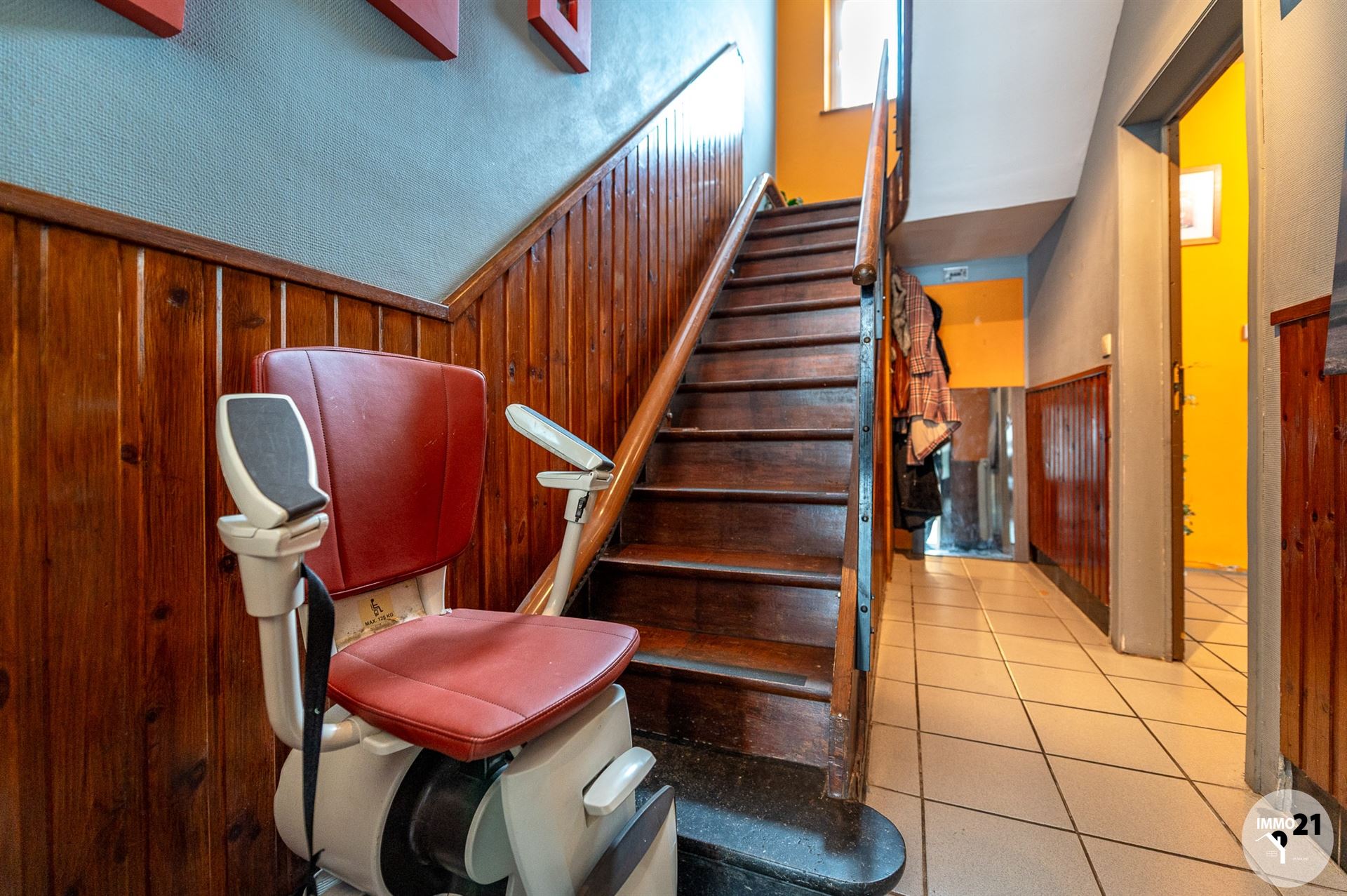 AMAY. L'agence IMMO21 vous propose cette maison 5 chambres avec garage et jardin. Composée comme suit: Hall d'entrée, séjour ( 31 m² ) , cuisine équipée ( 36 m² ), ( taque, hotte, four, frigo, évier ), salle de bains ( grande douche, baignoire, évier ), wc Premier étage : trois belles chambres. Deuxième étage : deux chambres. Grande annexe ( 26 m² ) avec nouvelle toiture isolée et nouveaux châssis, garage, cave. ELECTRICITE CONFORME et RECEPTIONNEE. Châssis double vitrage, chauffage central gaz de ville, Nouvelle toiture (2019), revenu cadastral 480 €uros. Un monte personnes "STANNAH" (allant du RDC au second étage) est installé dans la cage d'escalier. Celui-ci peut rester ou être démonté. Informations transmises sous réserve d'erreurs et non contractuelles.