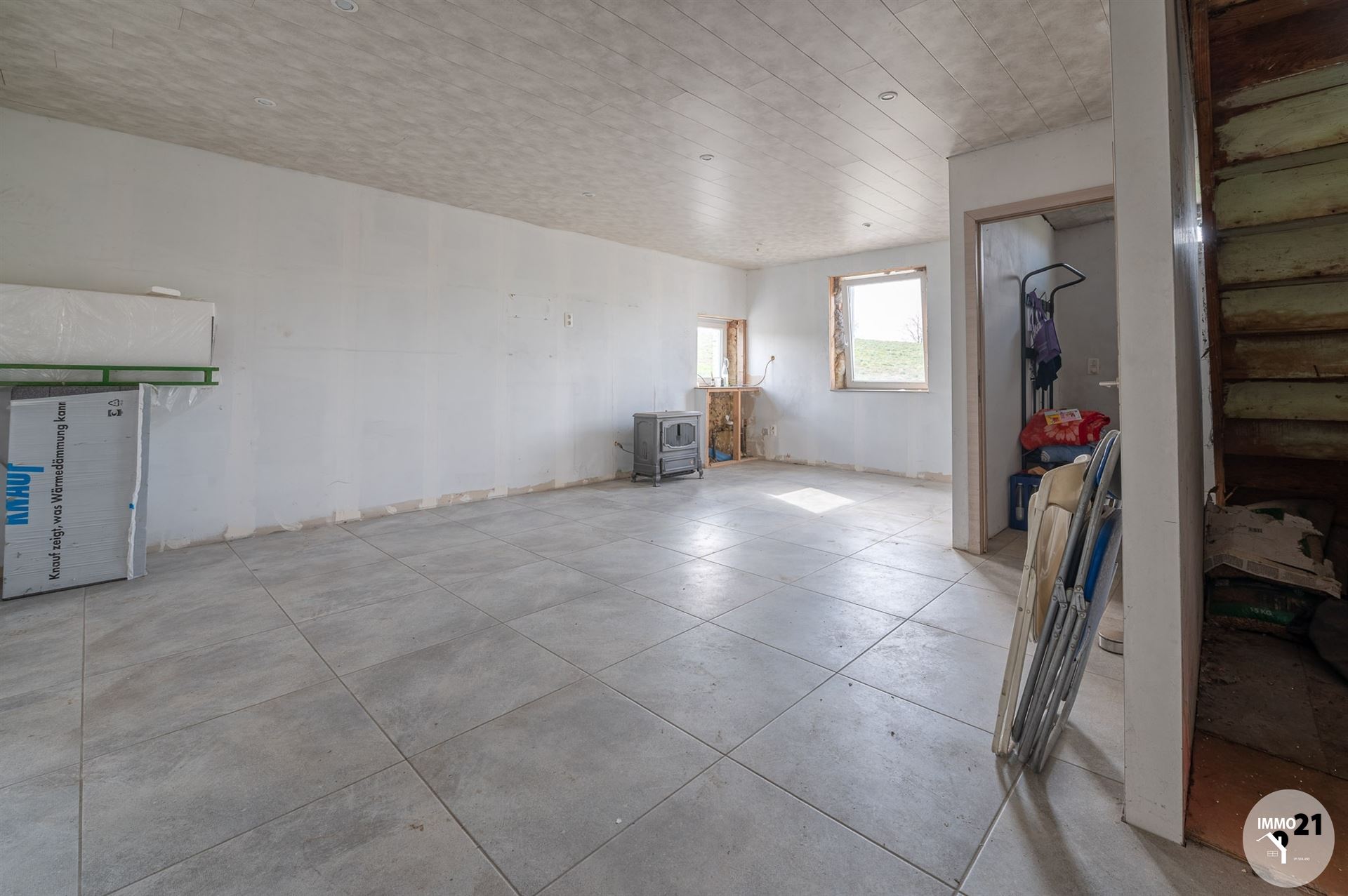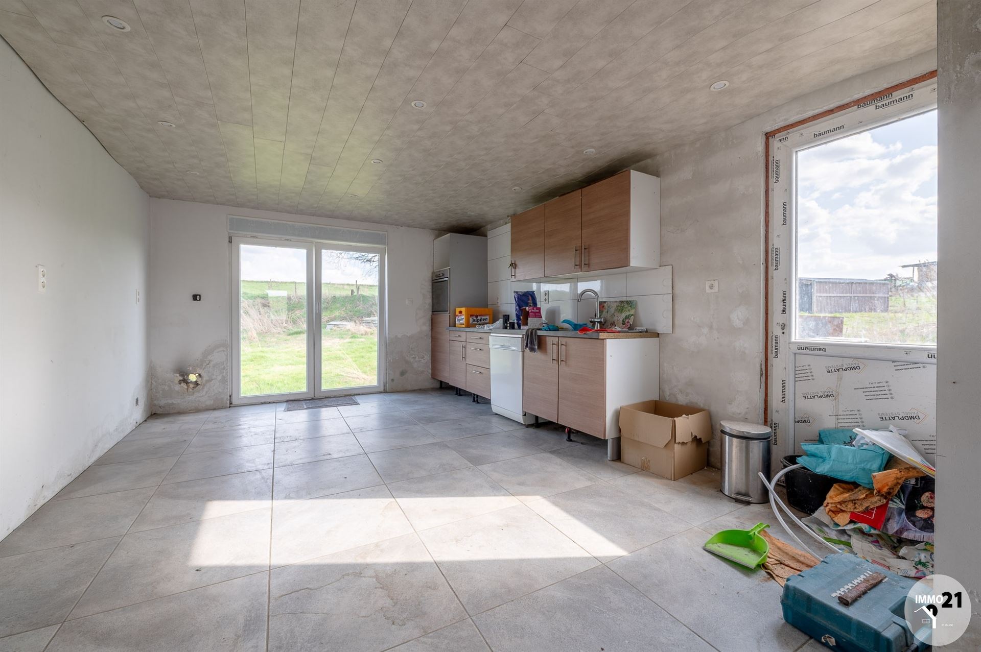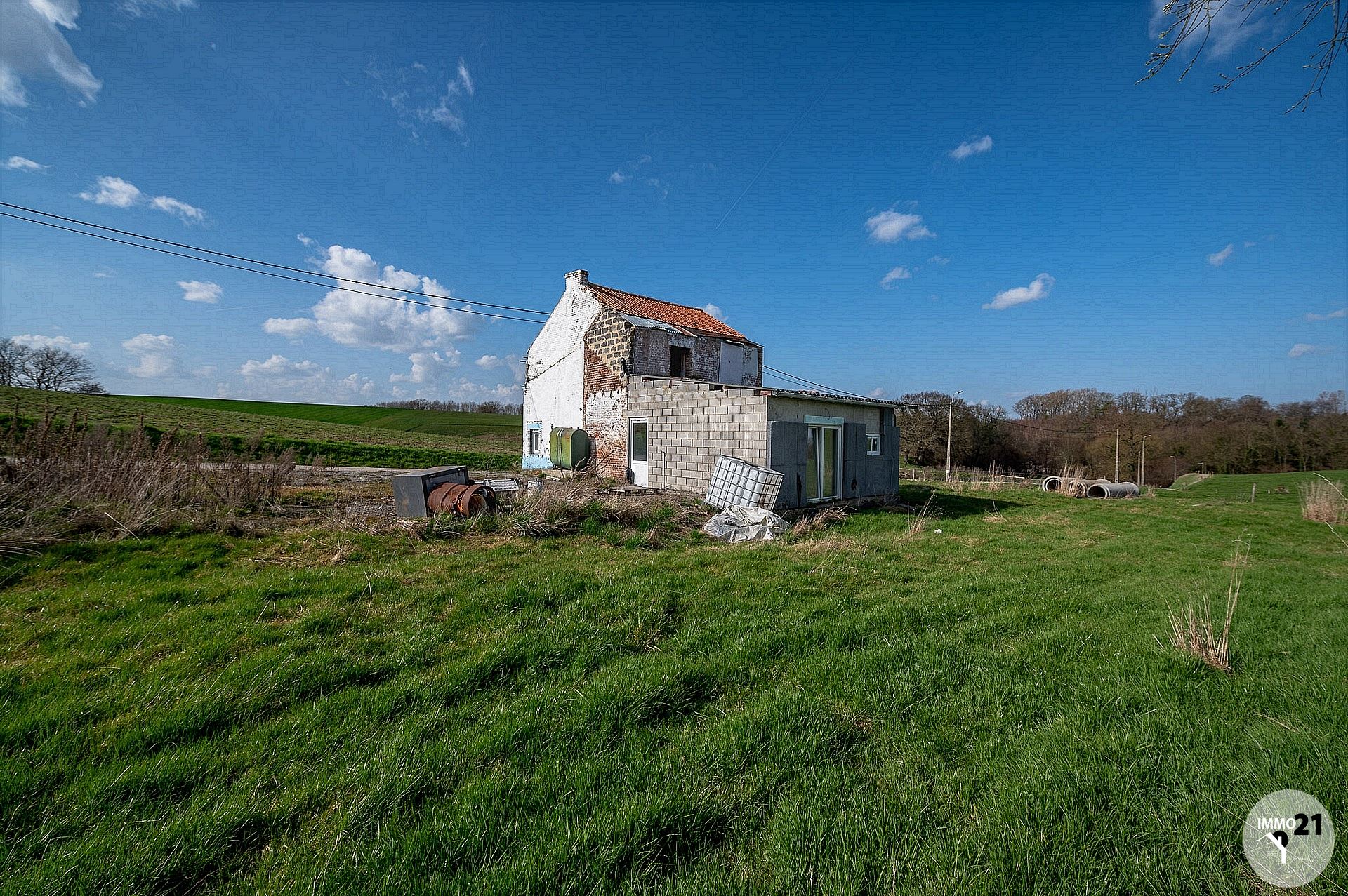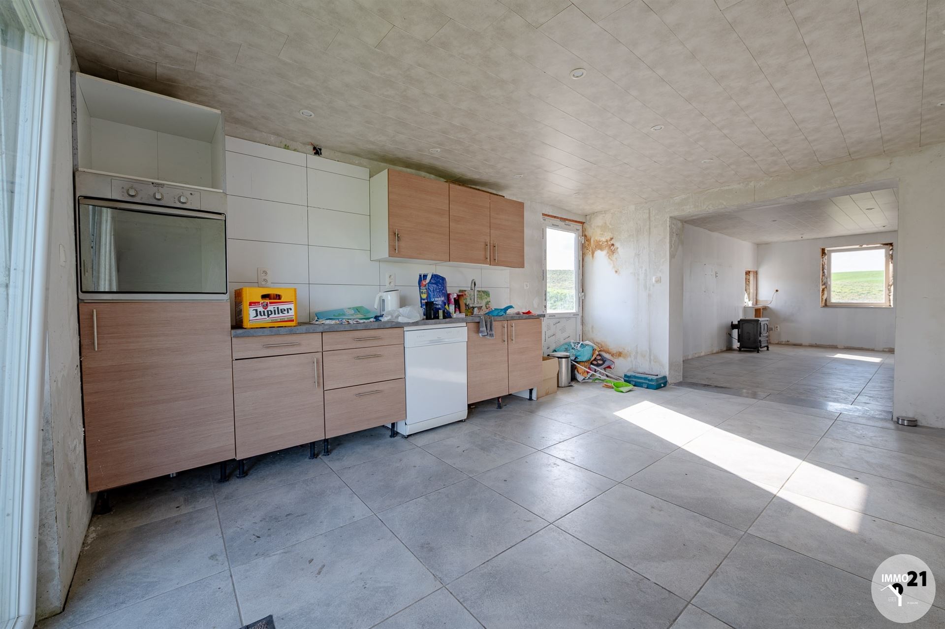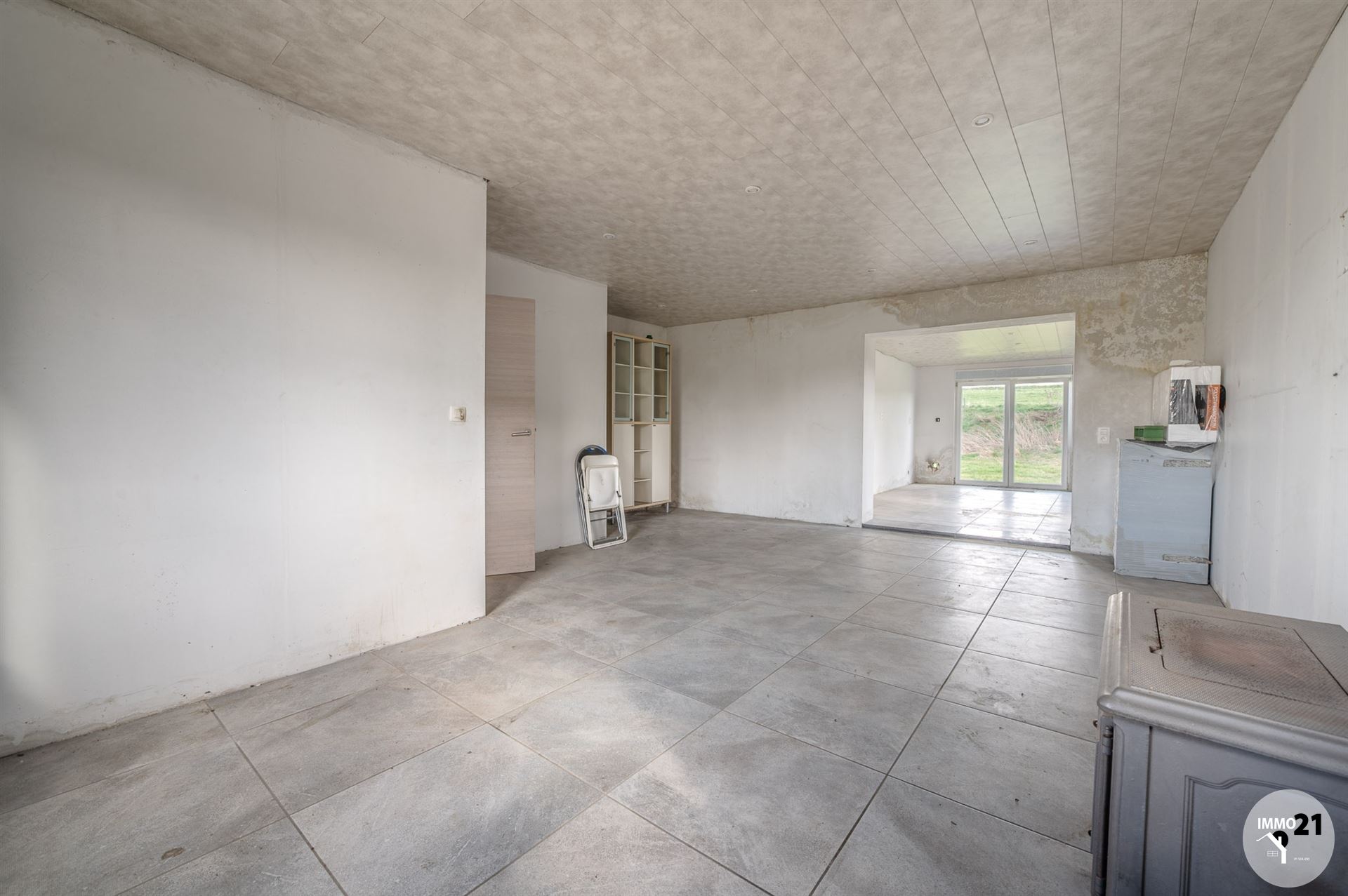 BURDINE. L'agence Immo21 vous propose cette maison 4 façades avec grand jardin de 1462 m² à restaurer. Située dans un endroit très calme en pleine campagne cette maison vous séduira par son potentiel. Composée comme suit: séjour avec chape isolée ( 30m² ) ouvert sur la cuisine ( 20m² ) meublée en partie équipée, une pièce d'eau avec nouveau boiler, wc avec lave main. Deux chambres. Toiture arrière refaite en 2021 , châssis double vitrage avec volets sur les pièces du rez-de-chaussée, abri de jardin/garage. Informations transmises sous réserve d'erreurs et non contractuelles.