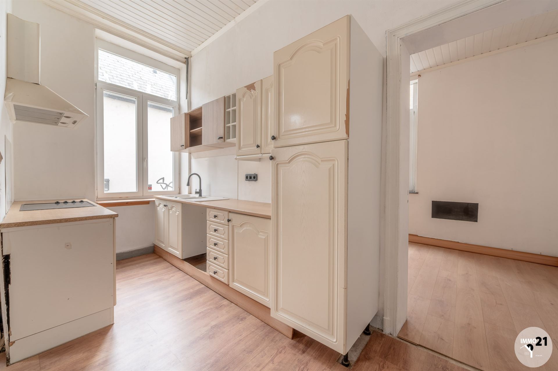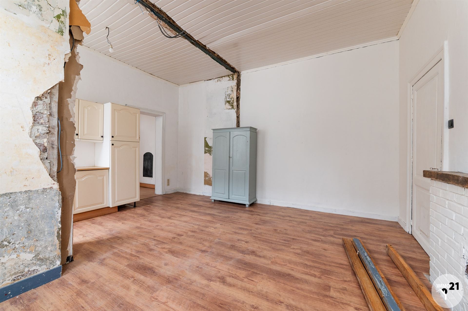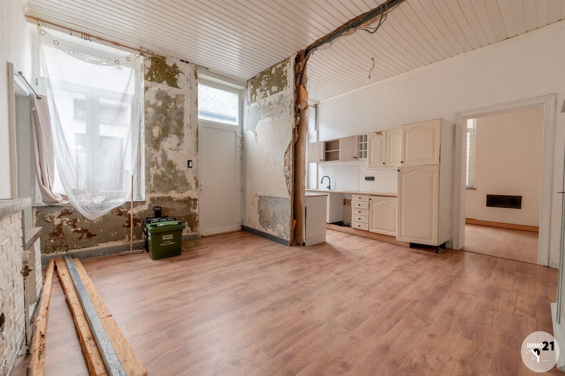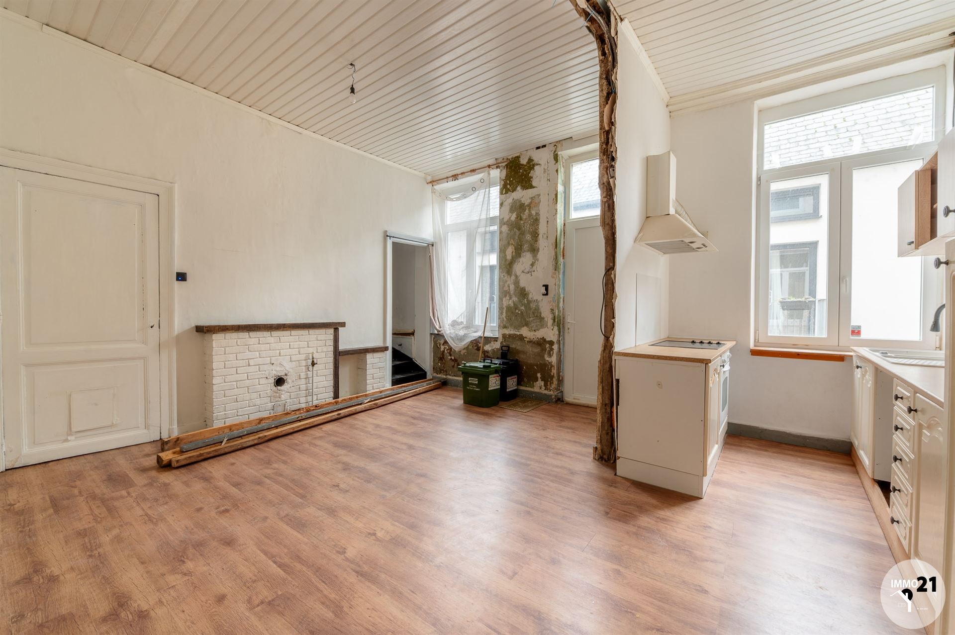 HUY Infos & visites: 0488/21.00.21 L'agence IMMO 21 vous propose cette maison à rénover idéalement située proche du centre et de toutes les commodités. Elle se compose comme suit : Rez-de-chaussée : Salon, cuisine et salle à manger. Au premier étage : 1 wc, 2 chambres, et une salle de bains. Au deuxième étage : Un grenier aménageable et une chambre à terminer. Au sous-sol : une cave. Chauffage au gaz de ville, électricité conforme (jusqu'en 2042), châssis double vitrage en PVC blanc, raccordée aux égouts. PEB F. Montant du RC net : 396€ Le prix indiqué veut dire : "faire offre à partir de 99.000€". Informations transmises sous réserve d'erreurs et non contractuelles.